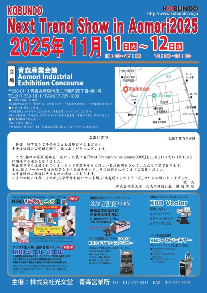 株式会社光文堂 青森営業所主催の展示会に出展いたします。
