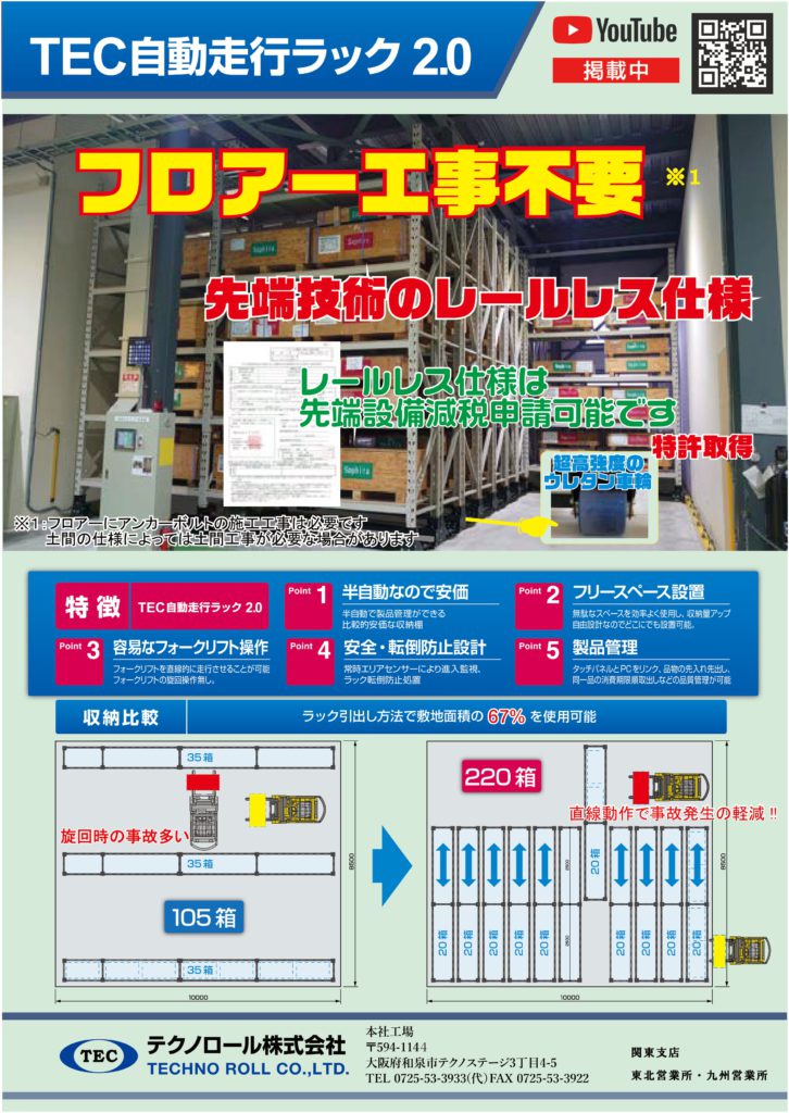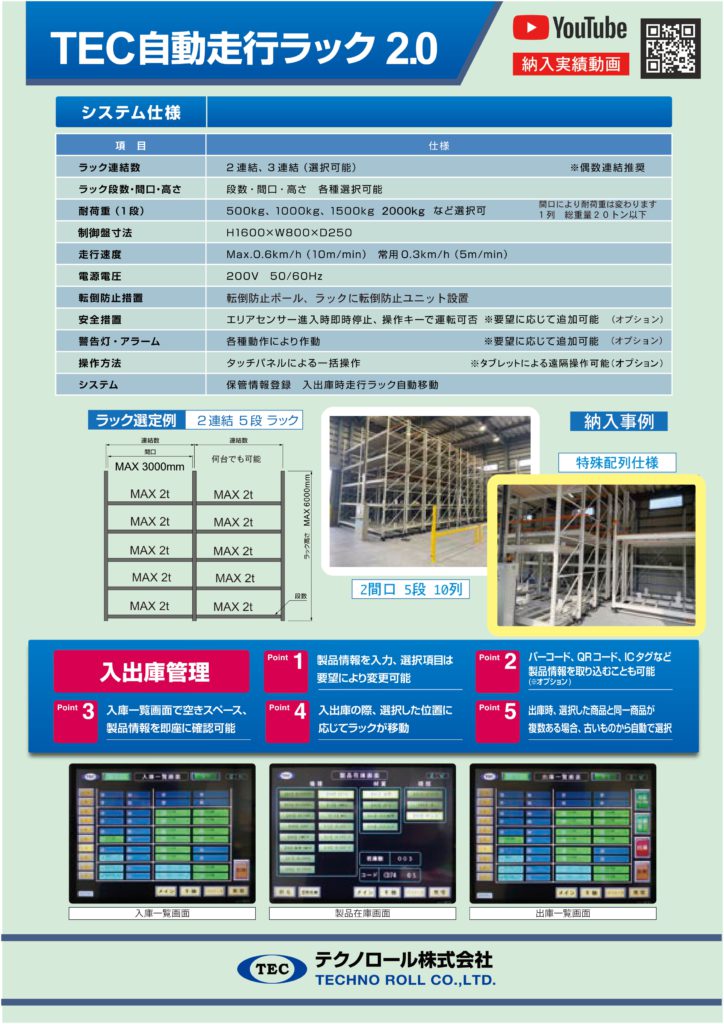 ・自動走行ラックシステム (縦移動タイプ) YouTube:https://youtu.be/cdlrCR69bEQ?si=73trIJ6e3i-57Yj_